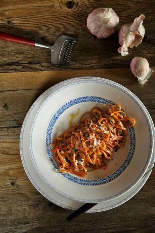 agrémenter les pâtes aux lardons encore chaudes, dès qu'on commence à se régaler.