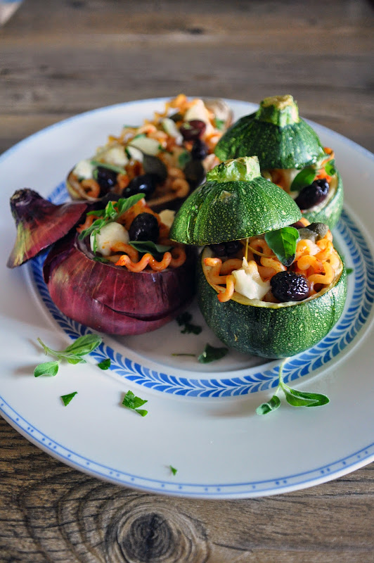 de faire un dôme en spirale avec des spaghetti comme une ruche et le farcir avec des légumes,